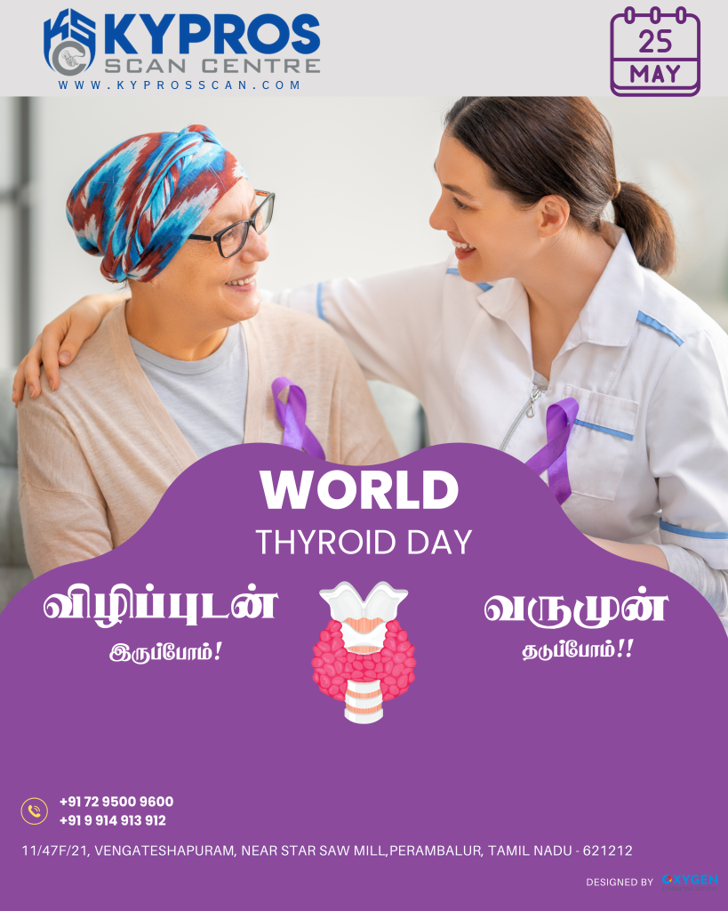 சிறியவர் முதல், பெரியவர் வரை அனைவருக்கு தைராய்டு பரிசோதனை அவசியமானது. தைராய்டு பாதிப்புக்கு வயது வரம்பு கிடையாது. #WorldThyroidDay #diagnosticlabsinperambalur #scancentreinperambalur #usgscaninperambalur #prenataltesting #radiologistinperambalur #prenataltestinginperambalur
